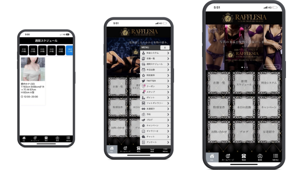 夜の店専用アプリ開発サービス 夜の店専用アプリ開発サービス ― お客様の利便性を高め、 ― 自然に売上が伸び、 ― 店の運営が圧倒的に楽になる。 キャバクラ・ホスト・ラウンジ・夜職専門 DX/売上向上/管理効率化アプリ 夜の店経営は、ここが限界ではありませんか? 夜の店経営は、ここが限界ではありませんか? • お客様は来てくれるが「次」に繋がらない • 指名・ボトル・来店履歴が頭の中と紙頼り • 店長・マネージャーが疲弊している • キャスト管理に時間を取られ、経営に集中できない • 売上を伸ばしたいが、打ち手が思いつかない 多くの夜の店が、 「人の頑張り」と「感覚」に頼った経営」を続けています。 もし、こんな店になったらどうでしょうか? • お客様が アプリから迷わず予約 • 来店履歴・指名履歴が自動で蓄積 • キャストの出勤・売上が一目で分かる • 店主は数字を見て判断できる • 「また来たい」と思われる仕組みがある もし、こんな店になったらどうでしょうか? • お客様が アプリから迷わず予約 • 来店履歴・指名履歴が自動で蓄積 • キャストの出勤・売上が一目で分かる • 店主は数字を見て判断できる • 「また来たい」と思われる仕組みがある それを実現するのが Night App1(ナイトアプリワン)です。 Night App1とは? Night App1 は、 夜の店・夜職のためだけに設計されたオリジナルアプリ開発サービスです。 高速開発 高い安定性 店舗ごとの完全カスタマイズ 【最大の価値①】 アプリ導入で「お客様の利便性」はここまで上がる ● 予約が圧倒的に楽になる • 電話不要 • 営業時間外でも予約可能 • 空き状況が一目で分かる 👉 予約ハードルが下がり、来店率が上がる ● 自分が“大切にされている”と感じる • 来店履歴 • 指名履歴 • 好み・会話メモ これらを元に、 一人ひとりに合った接客が可能に。 👉 「また来たい店」になる ● 予約が圧倒的に楽になる • アプリを開く=店を思い出す • 連絡が途切れない • 他店へ流れにくくなる 👉 お客様が“資産”になる ● 予約が圧倒的に楽になる • 電話不要 • 営業時間外でも予約可能 • 空き状況が一目で分かる 👉 予約ハードルが下がり、来店率が上がる ● 自分が“大切にされている”と感じる • 来店履歴 • 指名履歴 • 好み・会話メモ これらを元に、 一人ひとりに合った接客が可能に。 👉 「また来たい店」になる ● 予約が圧倒的に楽になる • アプリを開く=店を思い出す • 連絡が途切れない • 他店へ流れにくくなる 👉 お客様が“資産”になる ● 予約が圧倒的に楽になる • 電話不要 • 営業時間外でも予約可能 • 空き状況が一目で分かる 👉 予約ハードルが下がり、来店率が上がる ● 自分が“大切にされている”と感じる • 来店履歴 • 指名履歴 • 好み・会話メモ これらを元に、 一人ひとりに合った接客が可能に。 👉 「また来たい店」になる ● 予約が圧倒的に楽になる • アプリを開く=店を思い出す • 連絡が途切れない • 他店へ流れにくくなる 👉 お客様が“資産”になる 【最大の価値②】 売上は「頑張らなくても」上がるようになる ● 売上が見える=打ち手が増える • 日次・月次売上 • キャスト別売上 • 指名率・稼働率 👉 感覚経営から数字経営へ ● 機会損失が減る • 予約漏れがなくなる • 稼働の空きが分かる • キャスト配置が最適化 👉 同じ人数・同じ時間で売上UP ● キャストのモチベーションが上がる • 成果が見える • 評価が明確 • 不満が減る 👉 離職率低下 → 安定経営 ● 売上が見える=打ち手が増える • 日次・月次売上 • キャスト別売上 • 指名率・稼働率 👉 感覚経営から数字経営へ ● 機会損失が減る •予約漏れがなくなる • 稼働の空きが分かる • キャスト配置が最適化 👉 同じ人数・同じ時間で売上UP ● キャストのモチベーションが上がる • 成果が見える • 評価が明確 • 不満が減る 👉 離職率低下 → 安定経営 ● 売上が見える=打ち手が増える • 日次・月次売上 • キャスト別売上 • 指名率・稼働率 👉 感覚経営から数字経営へ ● 機会損失が減る • 予約漏れがなくなる • 稼働の空きが分かる • キャスト配置が最適化 👉 同じ人数・同じ時間で売上UP ● キャストのモチベーションが上がる • 成果が見える • 評価が明確 • 不満が減る 👉 離職率低下 → 安定経営 Night App1でできる主な機能 01キャスト出勤管理・出勤・退勤をスマホで・勤怠自動集計・給与・評価に連動 02予約・顧客管理・予約一元管理・顧客情報・来店履歴管理・指名・リピート分析 03売上管理・分析・リアルタイム売上・キャスト別実績・数字に基づく経営判断 04店舗運営DX・店長業務削減・報告・共有の自動化・多店舗展開対応 01キャスト出勤管理・出勤・退勤をスマホで・勤怠自動集計・給与・評価に連動 02予約・顧客管理・予約一元管理・顧客情報・来店履歴管理・指名・リピート分析 03売上管理・分析・リアルタイム売上・キャスト別実績・数字に基づく経営判断 04店舗運営DX・
